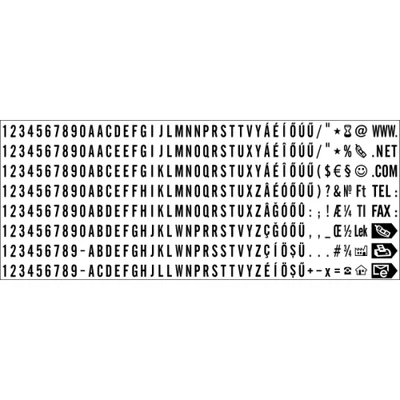 Trodat Typomatic kirakós bélyegzők betűkészlete.